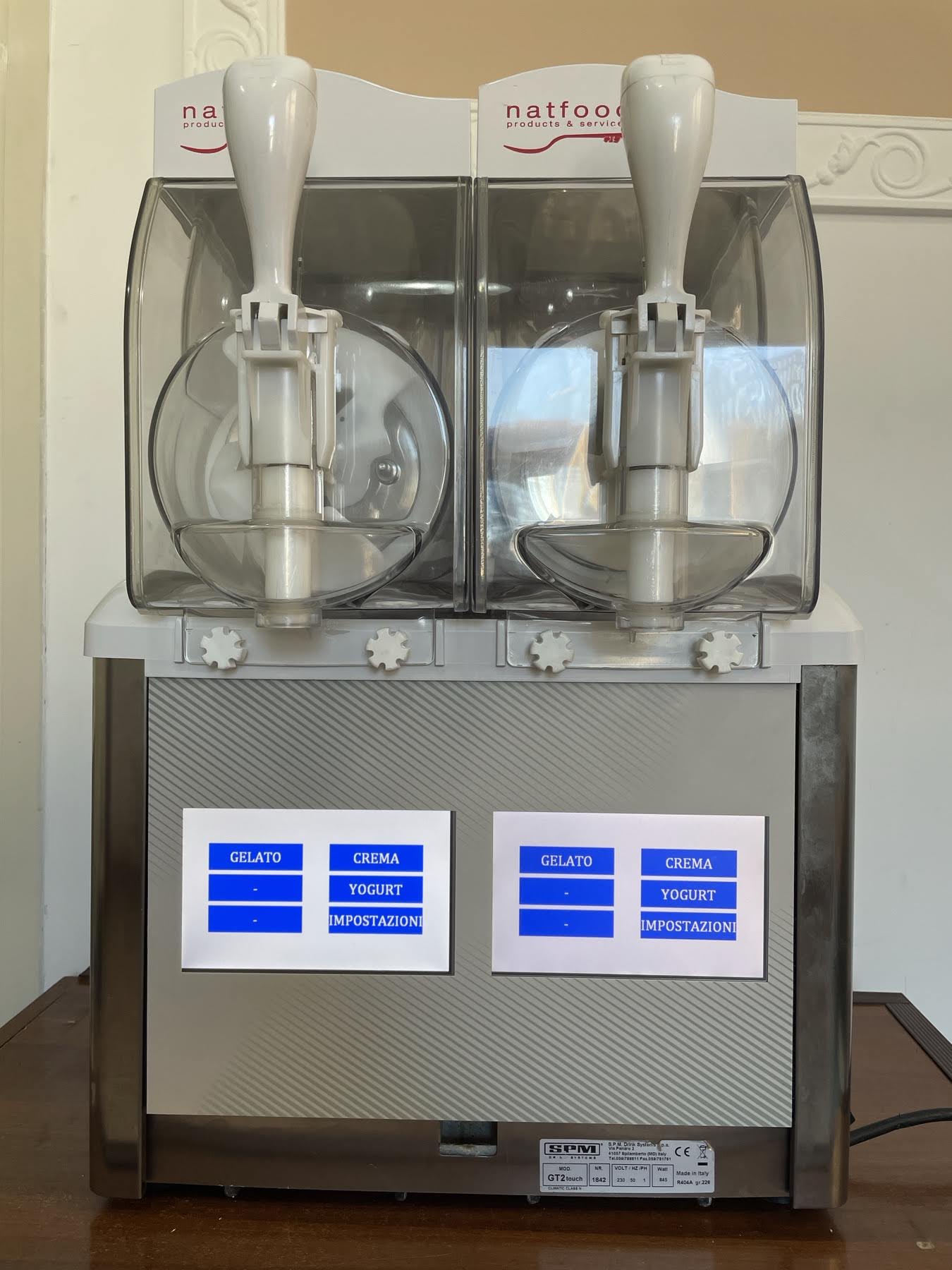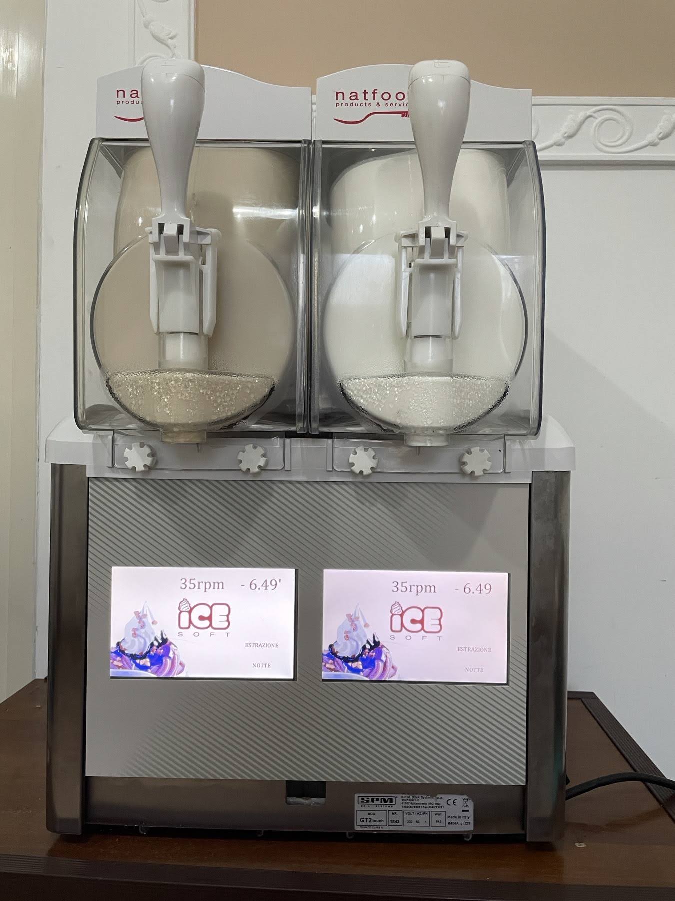Унікальна у своєму роді машина, здатна відкрити на ринку реальні можливості для бізнесу операторів сектору HoReCa. М’яке морозиво, заморожений йогурт, вершки для холодної кави, сорбет чи граніт – це встановлені варіанти. Меню вибору доступне італійською та англійською мовами, а також можливе програмування іншими мовами.